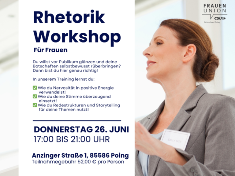Mutig sprechen, sicher überzeugen: Einladung zum Rhetorik-Workshop der Frauen-Union Poing