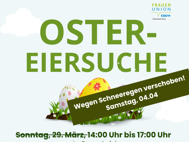 Nachdem uns der Schneeregen am vergangenen Wochenende einen Strich durch die Rechnung gemacht hat, möchten wir die Ostereiersuche nun mit umso mehr Schwung und Vorfreude nachholen.